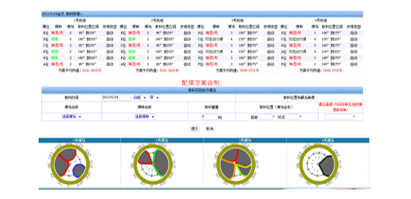 根據(jù)動(dòng)態(tài)、精確、直觀的煤場(chǎng)儲(chǔ)煤分布,按照煤質(zhì)變化、儲(chǔ)存時(shí)間、自燃情況指導(dǎo)鍋爐燃燒。并根據(jù)鍋爐設(shè)計(jì)參數(shù)、發(fā)電負(fù)荷計(jì)劃、煤場(chǎng)儲(chǔ)煤實(shí)際情況可智能制定摻配方案,并對(duì)摻配方案燃燒效果進(jìn)行評(píng)估。