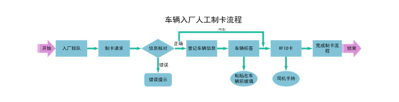 如果車輛首次來(lái)到該廠,需要對(duì)車輛信息進(jìn)行登記,主要登記信息為車牌號(hào)、車輛自重和車輛限重。如果物料供應(yīng)車輛上未粘貼管控系統(tǒng)的車輛標(biāo)簽,則需對(duì)該車輛制兩張卡:車輛標(biāo)簽和手持IC卡。如果車輛已有車輛標(biāo)簽,則只需制手持IC卡即可。